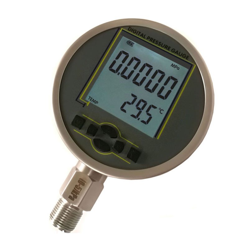 精密數字壓力表其外觀采用55x55mm超大尺寸液晶屏,采用主屏和副屏的分頻顯示,在顯示實時壓力的同時,可以同時顯示現場溫度、壓力最大值、壓力最小值等參考數據。