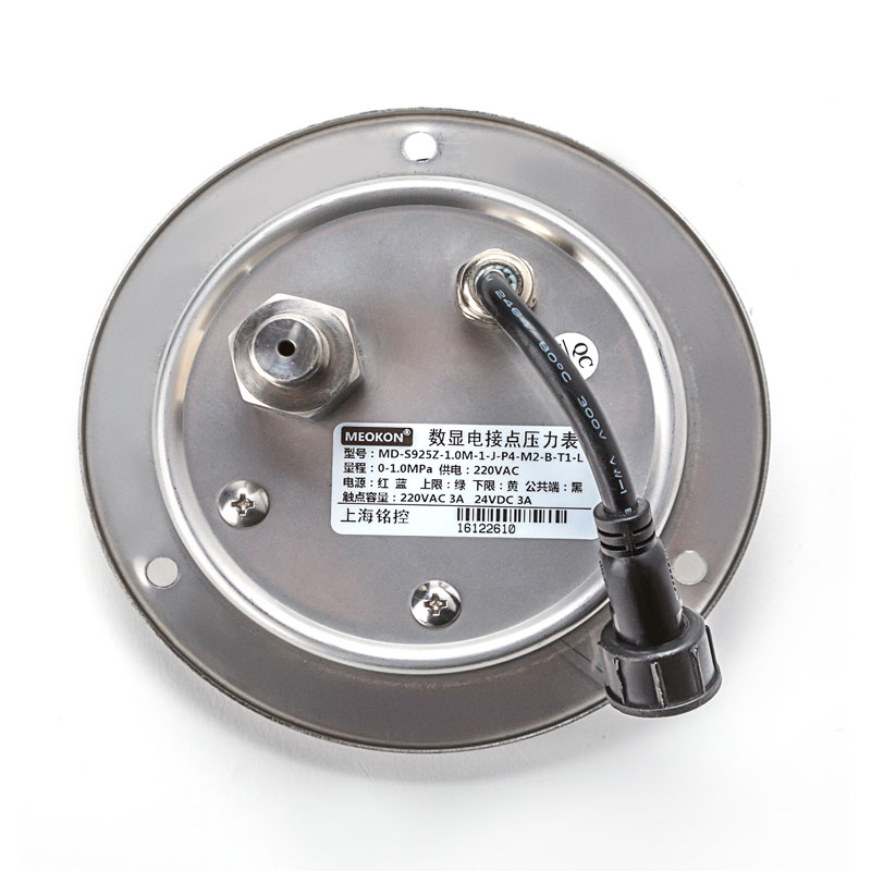 直徑100mm,軸向帶邊安裝,304不銹鋼外殼。 內置繼電器,接線方法同電接點壓力表,多種輔助控制功能。