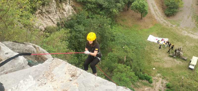 在完成愉悅的環島騎行后,此次團建也正式拉開序幕。之后,我們便開始了懸崖速降接力比賽活動。按照教練的安排,我們進行了兩隊的計時PK,懸崖速降不僅體現了團隊成員之間的協助能力,也使個人可以更好的突破自我;既有團隊協作,也有競爭比賽。