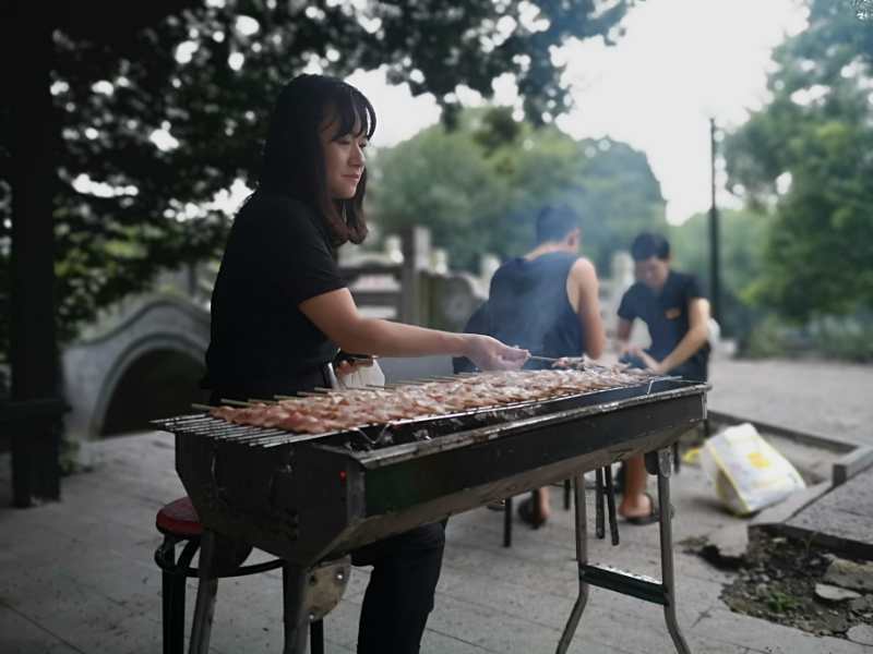 結束了白天的游戲活動,晚上是我們的休閑娛樂時刻,燒烤:串串的,打牌的,唱歌的;輕松又愉悅。